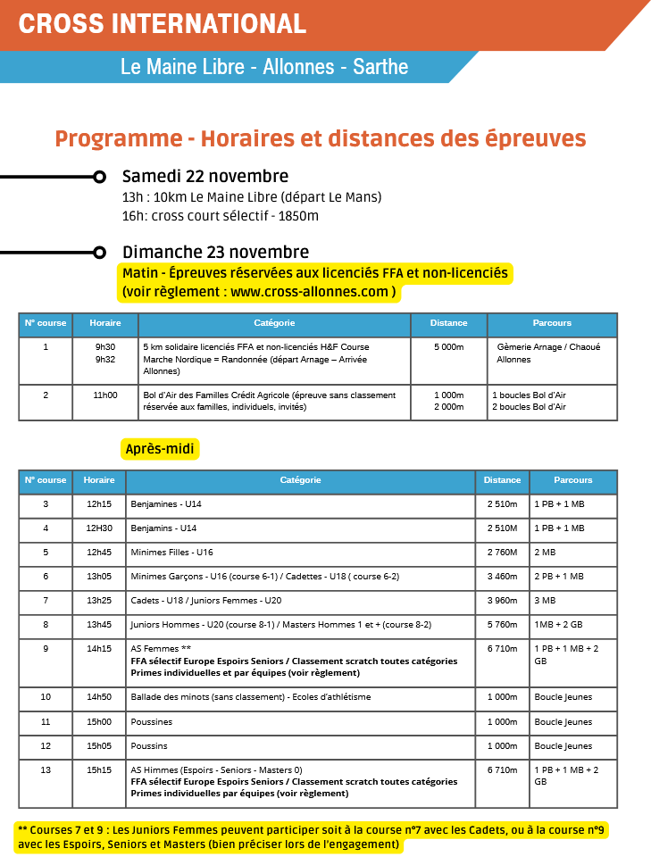 15h15 – AS Hommes – Sélectif pour les Championnats d’Europe Espoirs et Seniors – 6710m – 1 petite, 1 moyenne et 2 grandes boucles (Critères FFA) – Les Partants